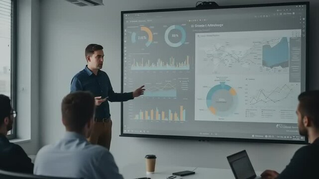 Teacher presenting report in classroom with graphs, effective learning