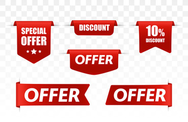 Set of discount tag label vector illustration, sale banner for media promotion with red and yellow color combination, special offer sticker