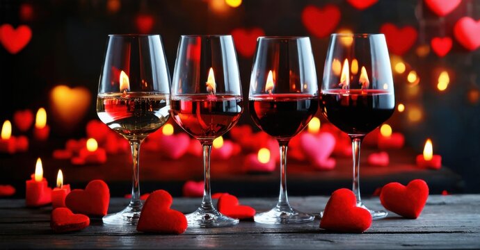 Romantic steak dinner with red wine, rose petals, and candlelight, perfect for Valentine's Day promotions, romantic restaurant menus, date night ads, wedding proposals, or fine dining marketing