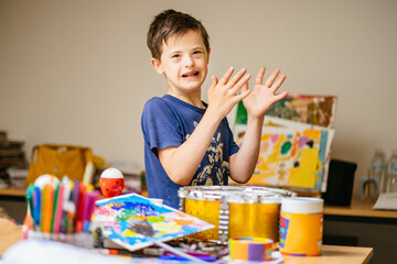 Disability, healthcare woman and care for child in classroom for people with development problems. Educational expert in activity class for kids who have mental or physical handicap challenges.