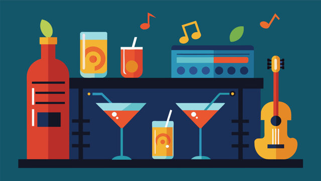 The bar serves specialty drinks named after the artists songs or albums adding a fun twist to the night. Vector illustration