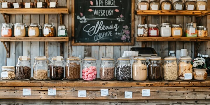 Natural pantry jars filled with wholesome ingredients showcase a chic and organized kitchen display with handwritten labels