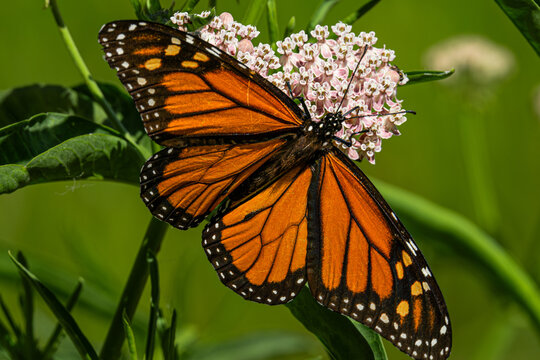 Monarch butterfly feeding on native milkweed