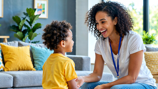 An inclusive speech therapist works with a child with an autism spectrum disorder generative ai