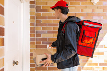 Fast delivery person with package running speedy courier service delivery person carrying box fast logistics