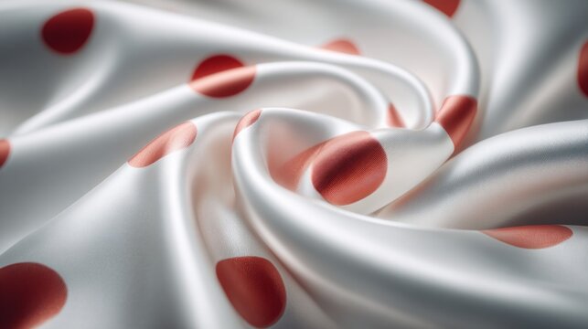 A close up of a red and white polka dot fabric. The fabric is very soft and has a very smooth texture