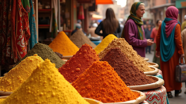Vibrant mounds of assorted spices, showcasing textures and colors in a close-up shot