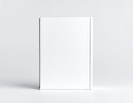 Minimalist white hardcover book mockup on a soft gray surface, casting subtle shadows