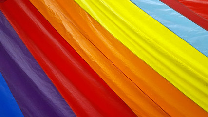 sail boat yacht race regatta with multi colorful spinnaker sails and mountain background