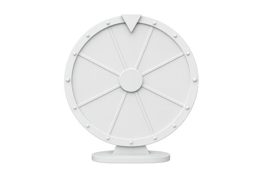 White fortune wheel spinning on transparent background, showcasing gambling, lottery, gaming possibilities in 3d rendering