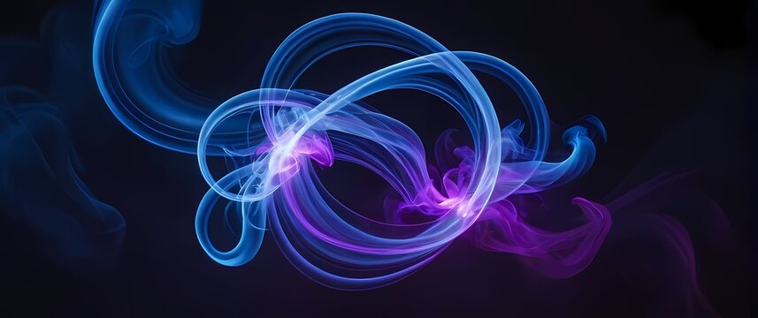 Abstract swirling smoke tendrils in electric blue and purple hues against dark backdrop