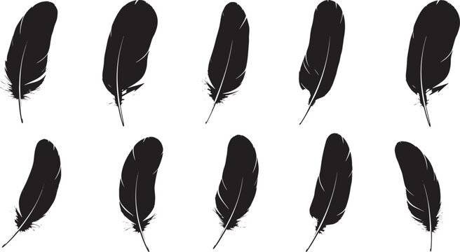 Set of isolated falling feathers vector illustration bundle collection