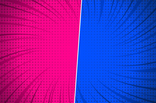 Flat design red comic style background. Pop art comic background lightning blast halftone dots. Pop comics book cartoon magazine cover. Cartoon funny retro pattern strip mockup. Split screen