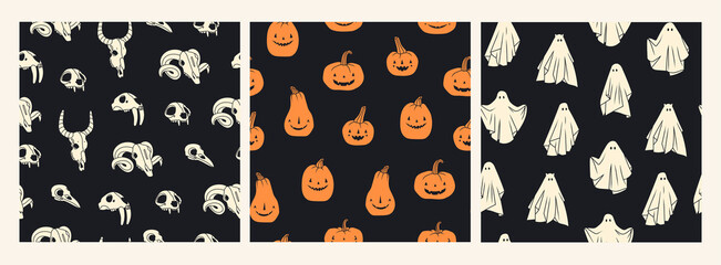 Black and white illustrated skull design for halloween