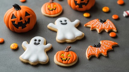 Playful Halloween Treats, a delightful assortment of creatively designed spooky snacks, featuring vibrant colors and whimsical shapes, perfect for festive celebrations and gatherings
