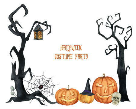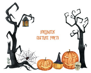 halloween decoration background template illustration. banner, copy space, spooky background.