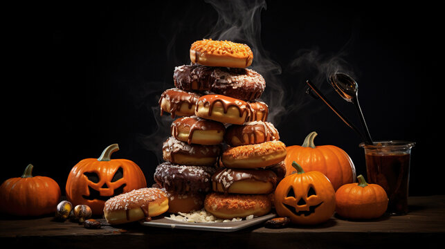 Generative AI Halloween treats with spooky glowing effects and dark shadows