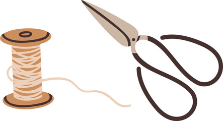 Hand drawn colorful spool of thread set isolated on white background. Sewing supplies. Vector illustration