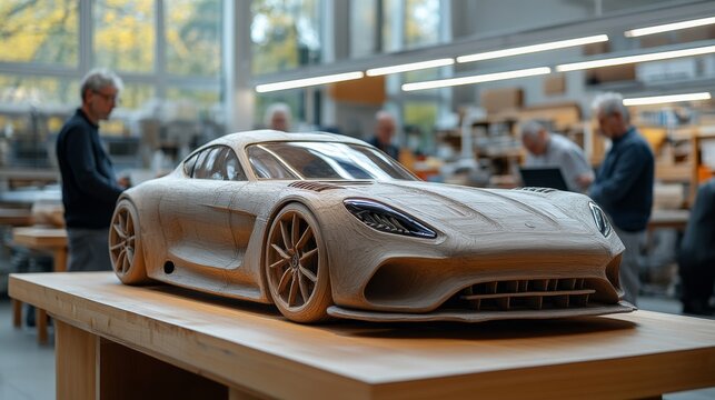 Clay model of a sports car in a design studio.