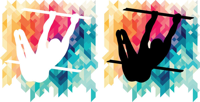 flight element from low bar to high bar female gymnast exercise on uneven bars in artistic gymnastics