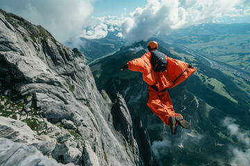 Sports Squirrel Jump, leaping from the top of a mountain to fly, a breathtaking display of extreme sports at height