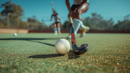 Energetic field hockey action with a focus on hockey ball, an Indian women's hockey player
