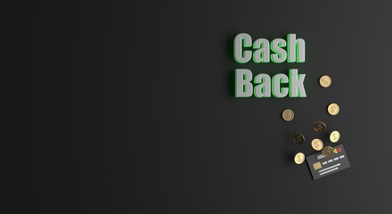 cashback, golden coins, promotion, cash back background, promotional flyer (3d illustration)