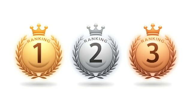 Laurel Wreath Medal Set In Gold, Silver And Bronze, vector illustration.