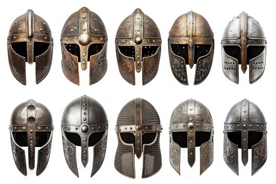 Collection of different types of helmets on a clean white background. Ideal for illustrations, safety articles, or sports-related content