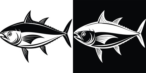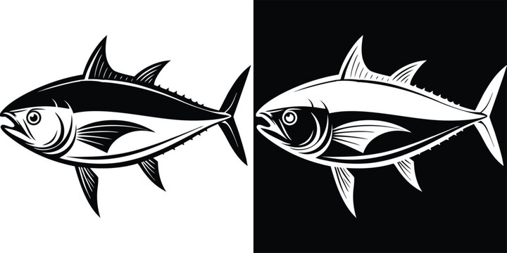 Dynamic tuna illustration captures powerful ocean predator in striking black and white contrast for bold aquatic themes