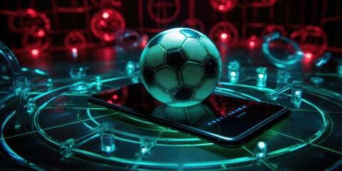Online Sports Betting Banner with Mobile App and Soccer Field on Screen