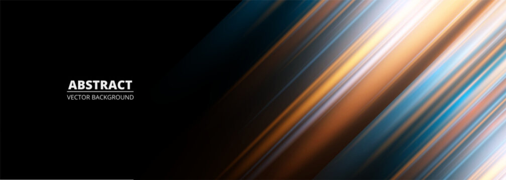 Black abstract background with colored stripes. Modern dark wide abstract banner design. Vector illustration