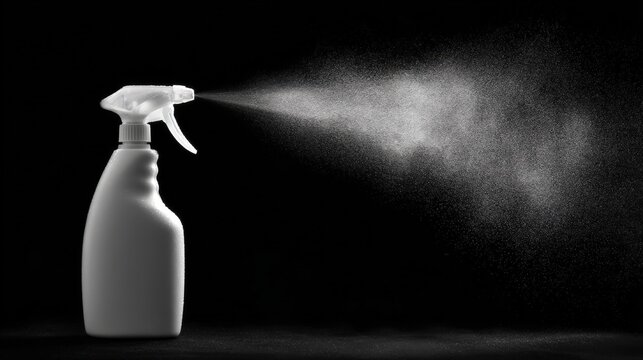 spray bottle with liquid misting against turquoise background creates refreshing atmosphere. fine mist adds sense of cleanliness and vitality