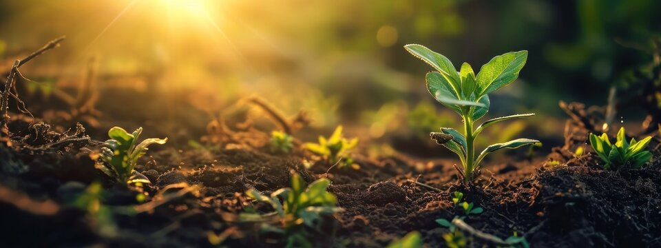A blooming snowdrop and a green sprout are symbols of the change of season, general renewal and new life. Generative AI