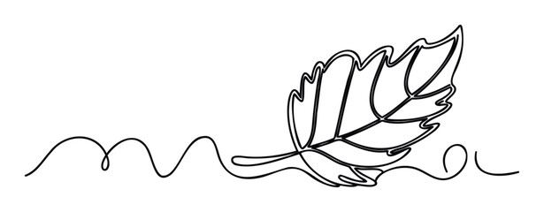 Single line drawing of a leaf with wavy lines representing growth or movement, perfect for nature themes, organic products, or spring and autumn seasons, suitable for websites and branding.