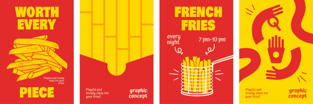 French Fries Cover Designs with Bold Typography and Vibrant Red-Yellow Themes.