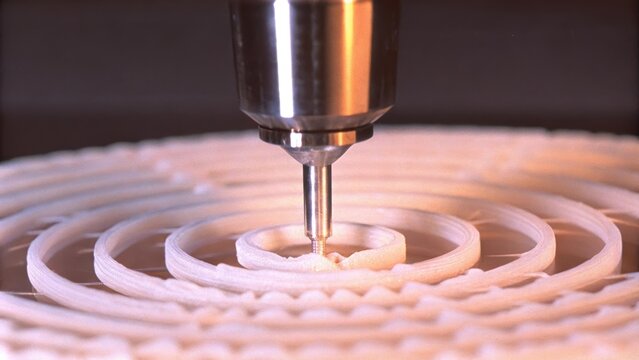 An image focused on a substance being spun onto a wafer using spincoating technology capturing the flowing liquid and the uniform coating technique in action.