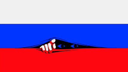 Eyes peeping out from Russian flag