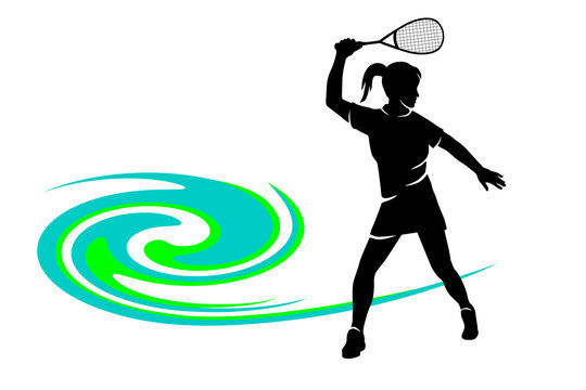 A bright orange background features a squash racket and a yellow ball, symbolizing the sport of squash and vibrant gameplay.