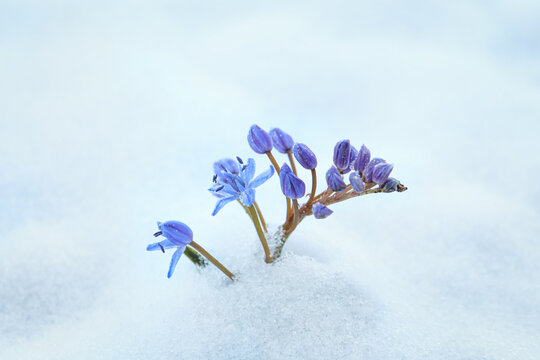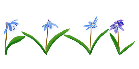 Bulbous perennial early spring flowers squill isolated on white background. Banner.