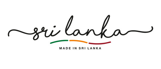 Made in Sri Lanka handwritten calligraphic lettering logo sticker flag ribbon banner