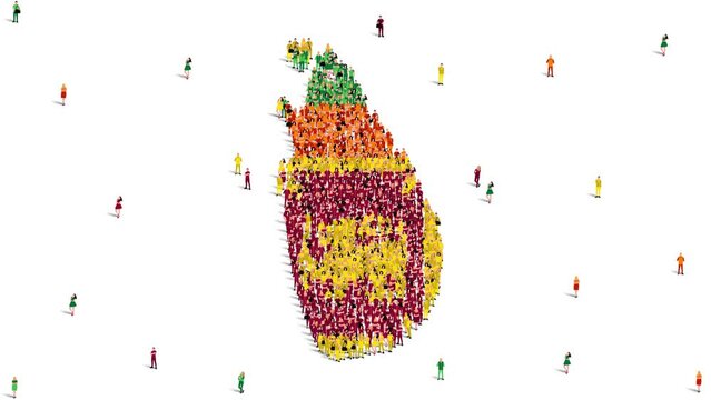 Sri Lanka Map and Flag. A large group of people in the Sri Lankan flag color form to create the map. 4K Animation Video.