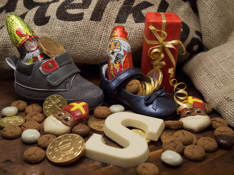 St. Nicholas Day gingerbread boots and cookies with festive decor