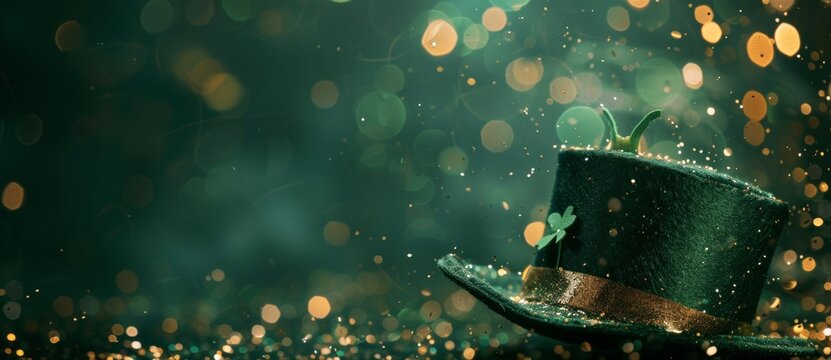 Festive green leprechaun hat and shamrock on gold coins celebrating st. patrick's day luck concept