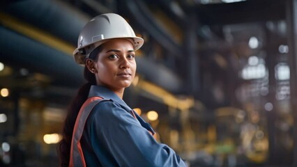 Indian woman staff worker engineer supervisor in safety suit work in factory