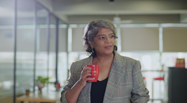 Smiling woman celebrating women's equality day in office