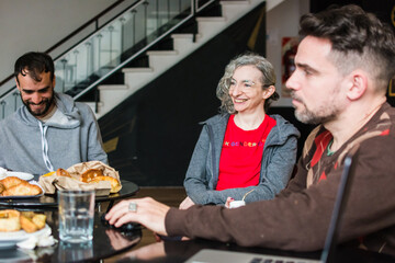 Group Of Happy Coworkers Discussing In Conference Room, no logos, no brands