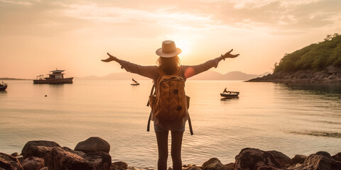 A woman stands in the rain with both hands raised in the air, ready to punch. Smooth repeating motion for background video animation.