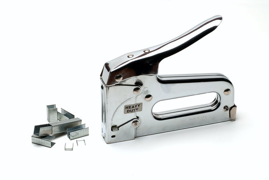 Heavy Duty Staple Gun with Staples isolated on white