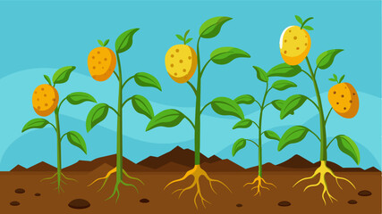 The potato plants usually a bountiful source of starchy tubers were now wilted and yellowed their yields meager.. Vector illustration